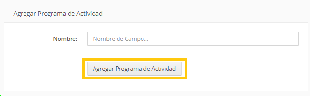 - Creación del Programa: Ingrese el nombre deseado para el Programa de Actividades en el campo correspondiente y presione 'Agregar Programa de Actividad'.