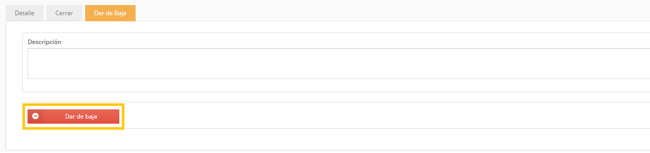 - Indica el motivo de la baja y haz clic en "Dar de baja" para confirmar y completar la acción.