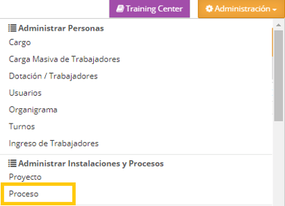 - Navegue a: Administración > Administrar Instalaciones y Procesos > Lugar de Trabajo.