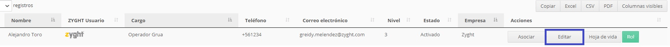 - Presione 'Editar' en las opciones del usuario seleccionado.